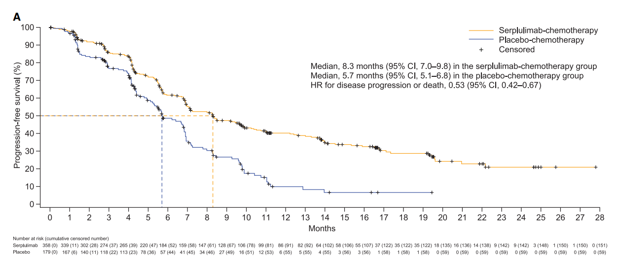 斯魯利單抗-化療組中位PFS持續改善
