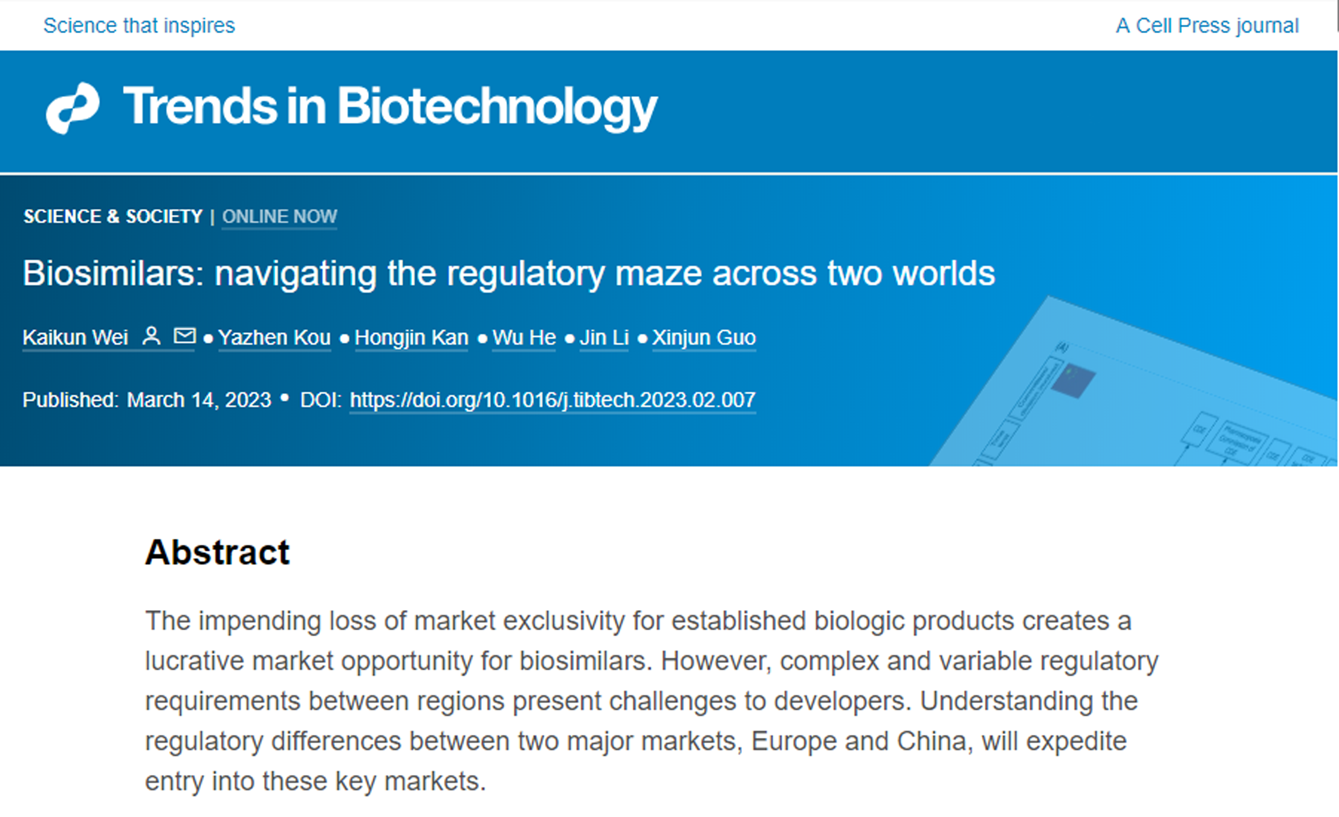 近日,Cell旗下期刊Trends in Biotechnology(影响因子:21.942)刊登了短篇评述,以首个中欧双批的国产单抗生物类似药汉曲优®(注射用曲妥珠单抗,HLX02,欧洲商品名:Zercepac®,澳大利亚商品名:Tuzucip®和Trastucip®)为例,探讨生物类似药在中国与欧洲的药政注册路径的异同。