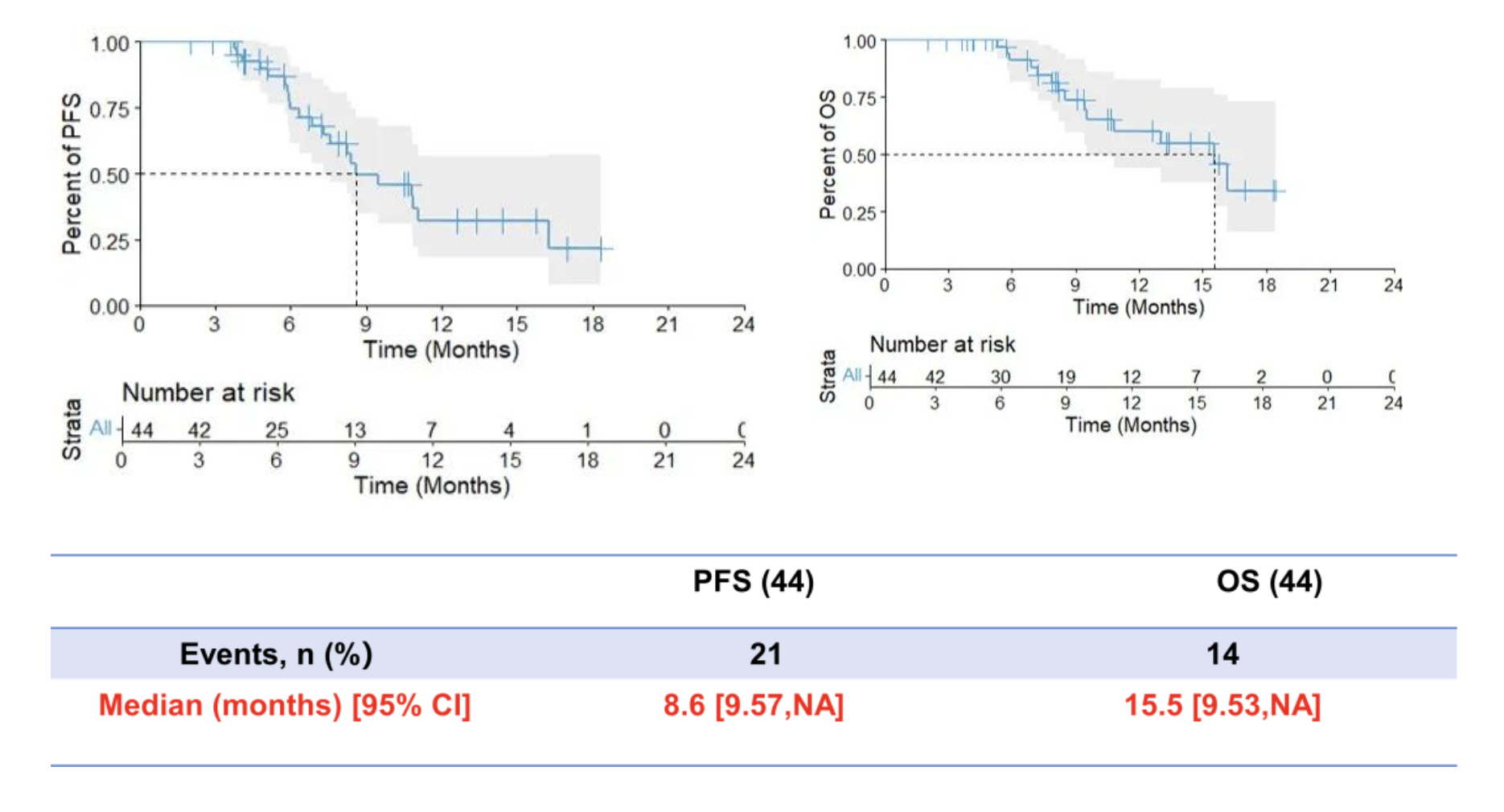 截至 2024 年10月,共纳入44名患者进行分析。研究的主要终点6个月的PFS率达74.48%;次要终点mPFS为8.6个月, mOS为15.5个月。